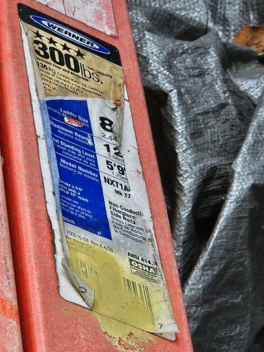 Here are a few photos (more to come soon) of the 7 or so ladders we will have for sale, from 4' up to 8' stepladders (most aluminum, one fiberglas Werner 8'), and also extension ladders (two with max 16' total extension i.e. 2x8' sections). We're only going to part with one of the two 8 footers, and the fiberglas one will sell for more than the aluminum one (more stable due to weight, and safer for working around electric wiring).